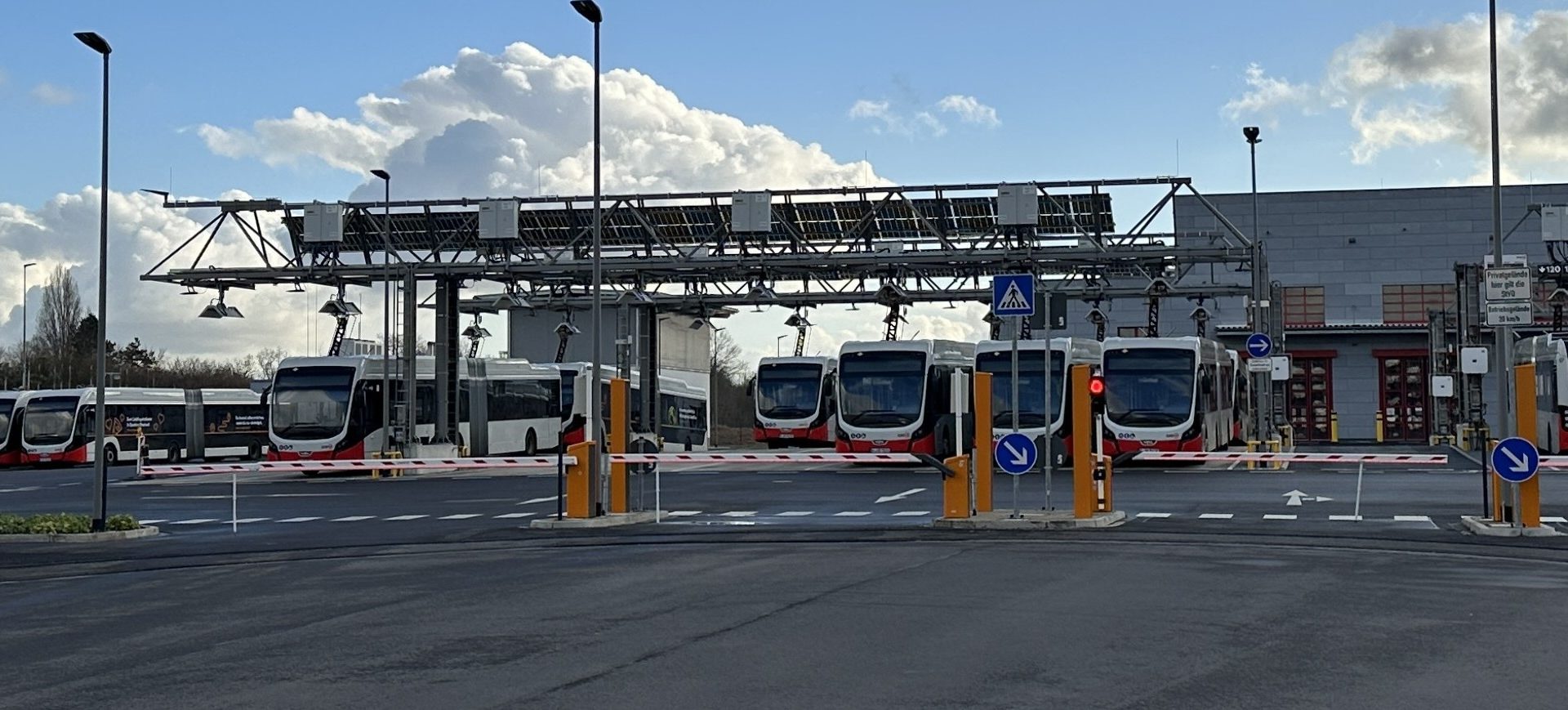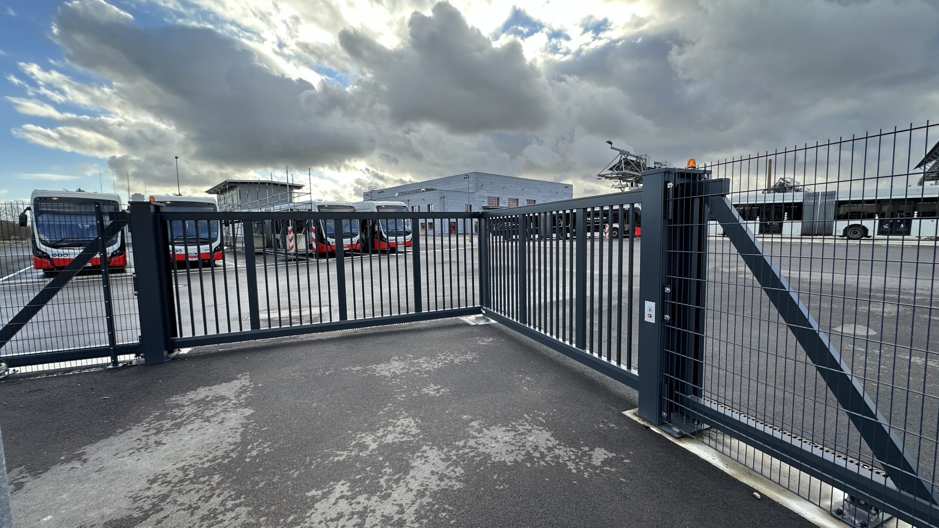Die Kölner Verkehrs-Betriebe (KVB) haben in Köln-Porz einen neuen Betriebshof auf einem etwa 63.000 Quadratmeter großen Areal, also auf etwa neun Fußballfeldern, fertiggestellt. Auf dem Betriebshof werden perspektivisch über 100 Elektrobusse ihre „neue Heimat“ finden. Platz wird es für 150 – 180 Fahrzeuge geben. Die Fahrzeuge werden hier nach ihrem Linieneinsatz abgestellt, über die Ladeinfrastruktur mit Ökostrom versorgt, gewaschen und gewartet. Der neue Betriebshof wurde von hermetec mit 620 m Sicherheitszaun eingefriedet. 2 automatische Schiebetore mit 4 Flügeltoren kamen zur Ausführung. Für die PKW und LKW (Bus) Vereinzelung wurden 6 automatische Schrankenanlagen, angesteuert mit Weitbereichslesern, verbaut. Zur besseren Wahrnehmung der Schranke wurden die Schrankenbäume mit Baumbeleuchtung und Ampelsteuerungen ausgestattet.